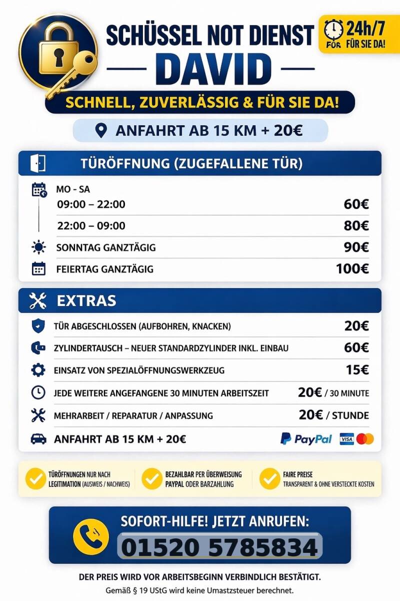 Bei Schlüssel Not Dienst David legen wir großen Wert auf Fairness und Durchsichtigkeit bei all unseren Leistungen. Erfahren Sie hier, wie wir garantieren, dass Sie genau wissen, was Sie erwartet – ohne versteckte Kosten oder böse Überraschungen.